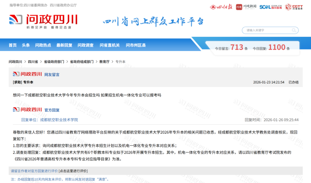 成都航空职业技术大学官方回复: