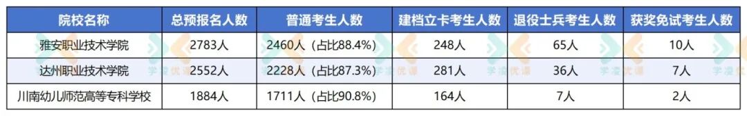 可见,普通考生仍是专升本报考的主力群体,竞争压力最大;而建档立卡、退役士兵、获奖免试等专项考生,凭借专项计划,竞争强度相对较低。