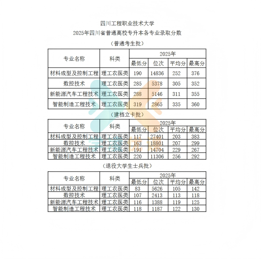 四川工程职业技术大学2025年专升本录取分数线